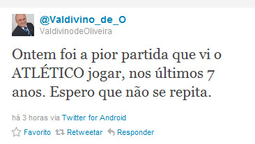 Valdivino de Oliveira, presidente do clube, já deu o ultimato. A mensagem no twitter diz tudo.