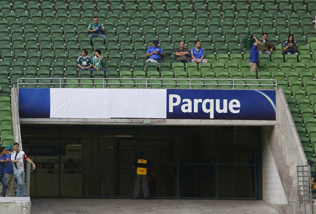 Uma cena patética. Tampar o nome do investidor que construiu o estádio do Palmeiras. No jogo entre Palmeiras e Atlético-MG no último sábado.