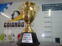 Esse aí é o troféu da Aparecidense, que com uma rodada de antecedência conquistou o título de campeã goiana da segunda divisão.
